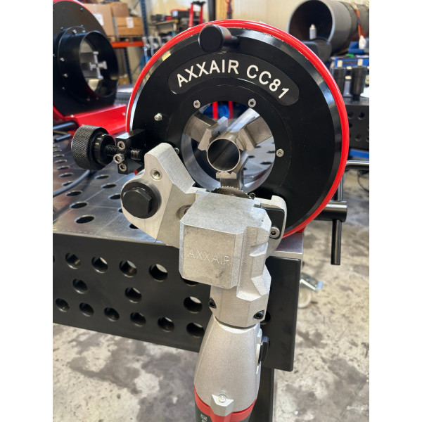 AXXAIR CC81M je profesionálna orbitálna píla na presné rezanie rúr Ø 5–78 mm (0.25 - 3") s hrúbkou steny do 5 mm. Vďaka presnému koncentrickému upnutiu umožňuje opakované čisté rezy bez deformácie – ideálna príprava pred orbitálnym zváraním